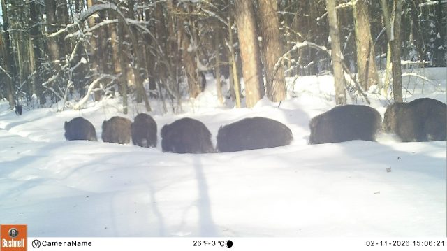Кабаны коллективно справляются с такими трудностями: они сбиваются в стадо. Такая социальная организация помогает передвигаться по глубокому снегу.