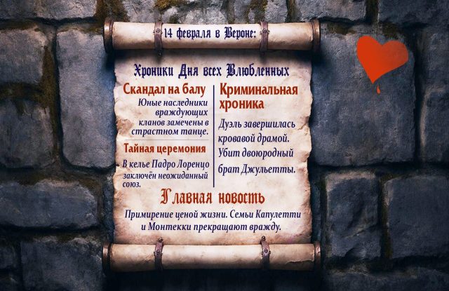 Вспомнить историю Ромео и Джульетты (16+)