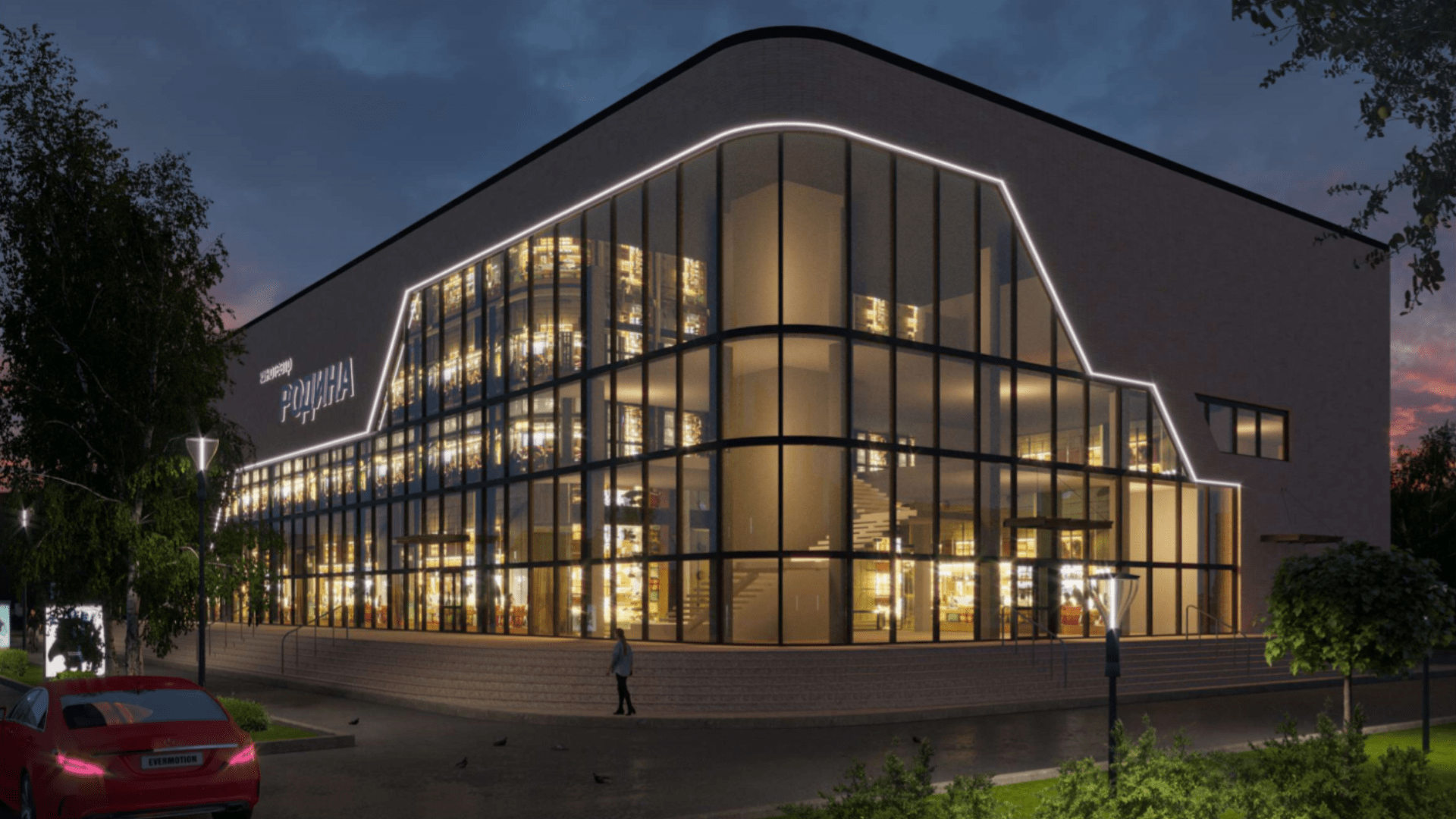 «Родина» будет работать с 8:00 до 2:00 ежедневно. Прилегающую территорию у кинотеатра также благоустроят: появится комфортная зелёная зона отдыха с удобными скамейками, а вечером будут включаться фонари и подсветка.