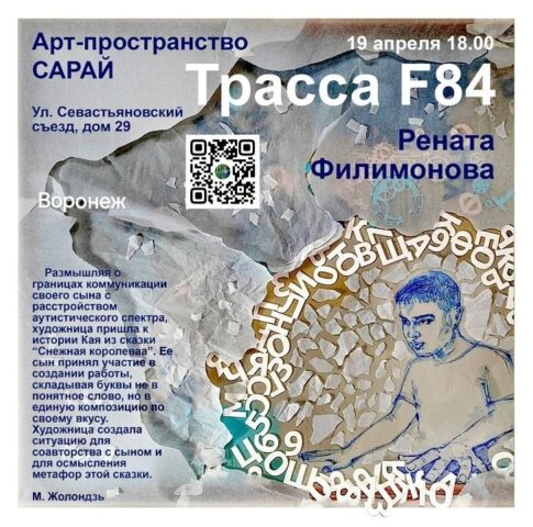 Художница из Старого Оскола Рената Филимонова – мама мальчика Михаила с расстройством аутистического спектра. Она представит проект «Трасса F84», посвящённый аутизму и материнству.