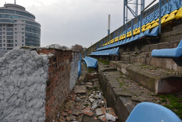 Непривычно видеть огромную чашу Центрального стадиона профсоюзов совершенно пустой. На трибунах, рассчитанных на 34 800 зрителей, нет ни души, а часть пластиковых сидений уже демонтирована. Лишённое ворот футбольное поле больше напоминает луг. Над разросшейся газонной травой высится бурьян. На этом стадионе уже никогда не прозвучит судейский свисток…
