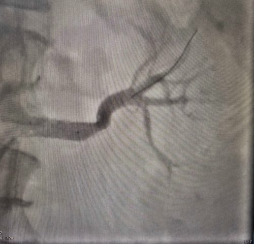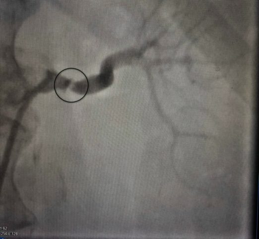 У пациентки выявили критический стеноз (сужение) левой почечной и артерии, что и было причиной гипертензии.