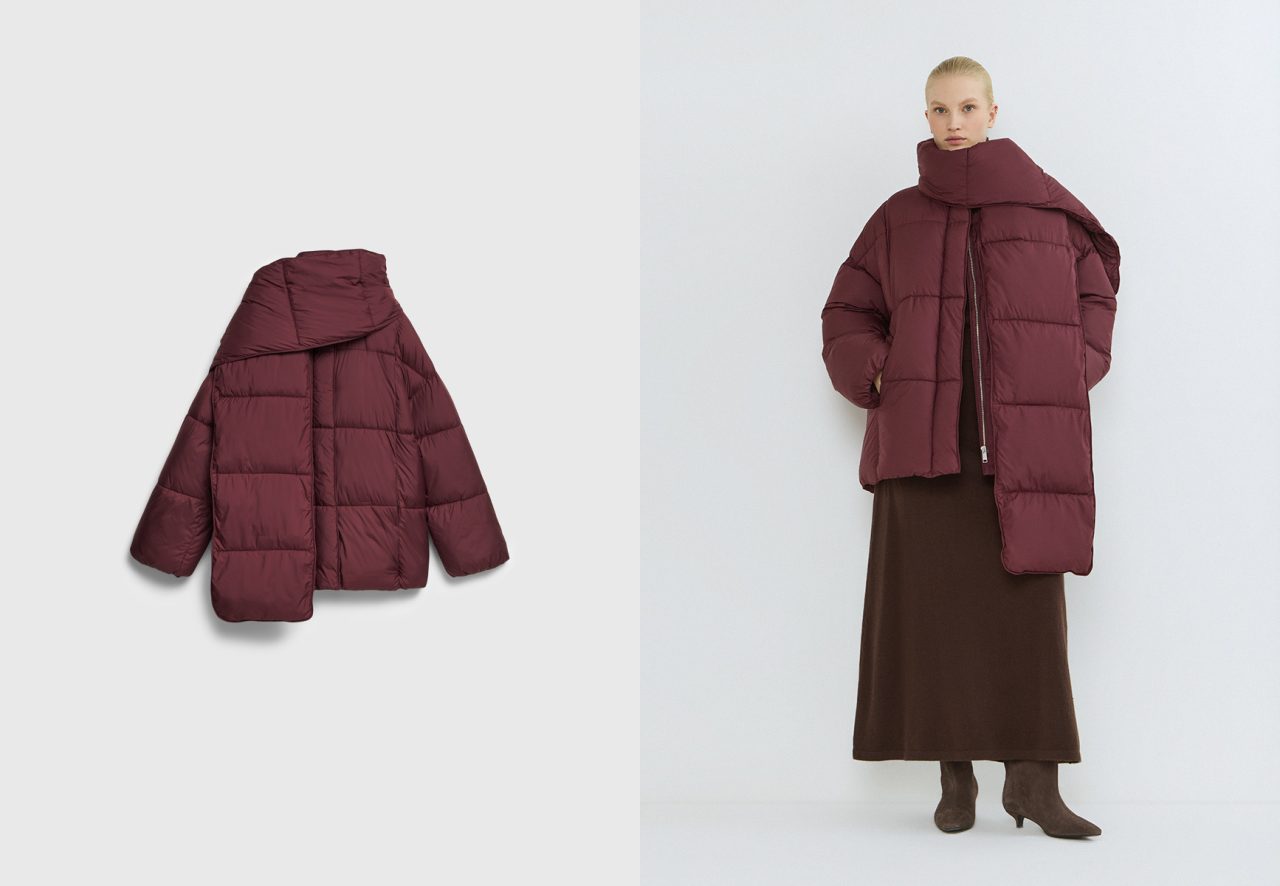 Когда не хочется ничего придумывать, а ноябрь позволяет ещё ходить в короткой куртке, этот компактный пуховик с высоким воротником будет уместен всегда и везде. Он современный, интересный и, несмотря на цвет, не скучный. Высокий воротник не просто защищает от ветра, а придаёт силуэту графичность, делает его более собранным и элегантным. Это небольшое изменение, которое кардинально меняет восприятие привычной вещи.