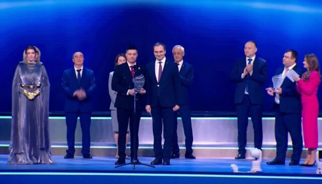Награду из рук заместителя министра строительства и ЖКХ РФ Алексея Ересько вручили за проект «Живи, село!».