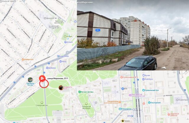 - улица Миронова, 37/1 (в районе пересечения с дублёром Московского проспекта).