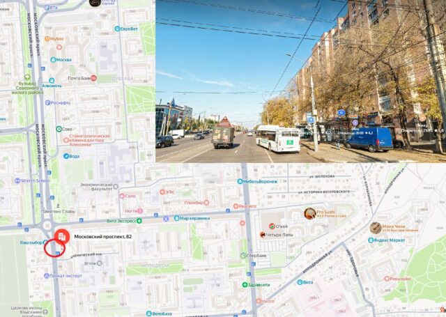 - Московский проспект, 82 (в районе пирамиды у памятника Славы)