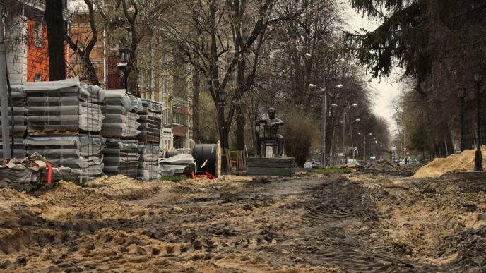 Параллельно работа продолжается и на другой части улицы — от Фридриха Энгельса до Никитинской. Благоустраивать территорию начали ещё в декабре прошлого года. Сейчас рабочие занимаются укладкой коммуникаций.