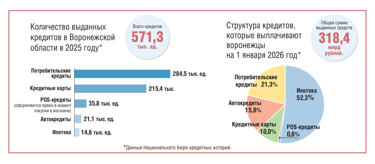 1,4 млн действующих кредитов оформлено в Воронежской области на 1 января 2026 года. Средний срок кредита – 36 месяцев.
