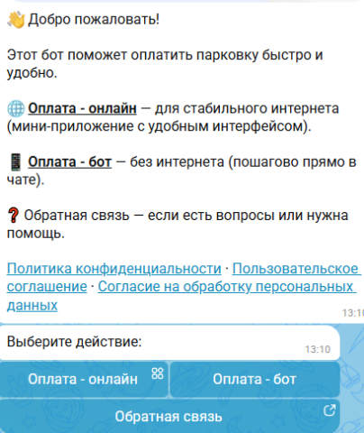 Далее нужно выбрать город из списка, затем указать номер, а после вручную ввести номер зоны парковки. Ссылка на бот в MAX.