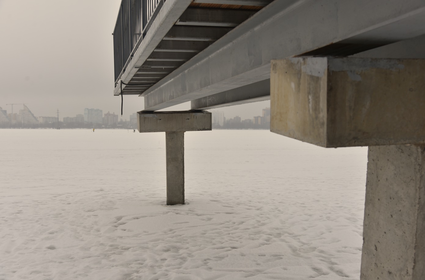 Ещё летом пирс мог показаться причалом для пассажирских судов. Солидное бетонное основание, металлическая основа, деревянный настил сверху. Но конструкции, не простояв и года, дружно пришли в негодность – повреждения опор видны невооружённым глазом.