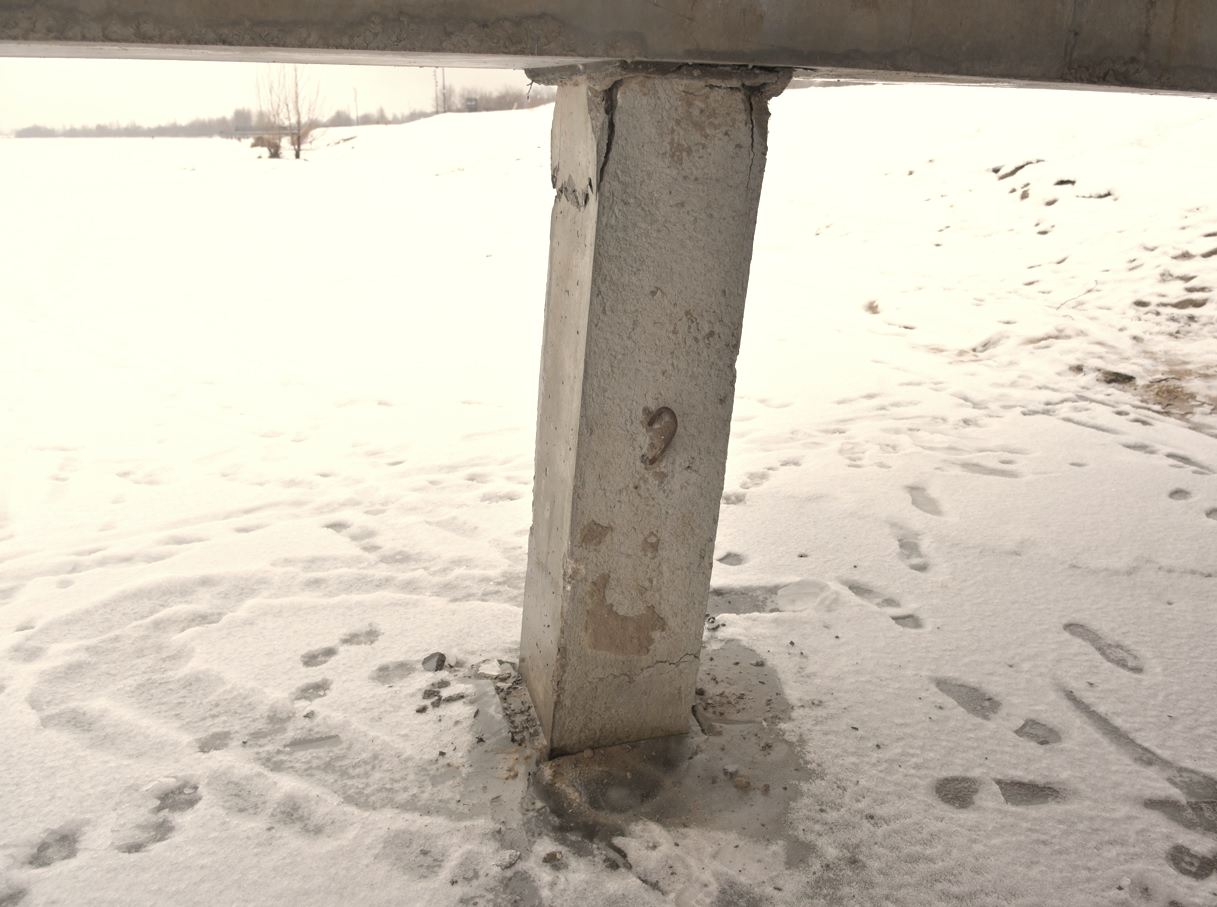– Отчётливо видны существенные дефекты. Например, образовавшийся крен свайных опор, – пояснил Андрей Андреев. – Причинами могли стать недостаточная несущая способность свай и их количество, пренебрежение геологическими условиями. Ещё один возможный фактор – нарушение технологии строительства, недостаточная глубина забивки свай. Также можно предположить, что ледяное поле при обмерзании на сваях могло вырвать их при повышении уровня водохранилища. Такое часто бывает, если не проводить специальные мероприятия по вырубке льда вокруг свай.