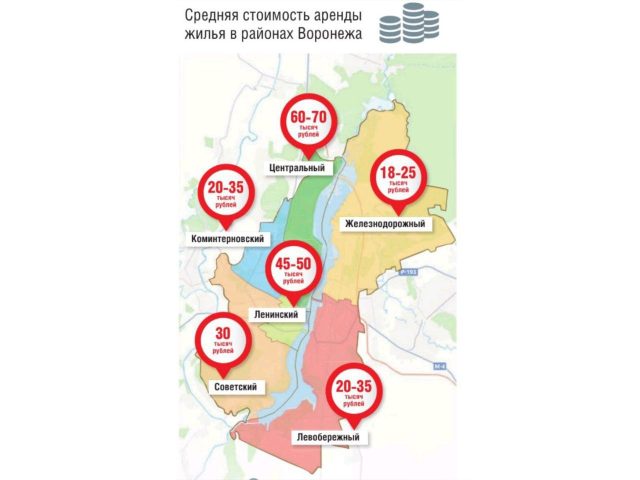Средняя стоимость аренды жилья в районах Воронежа