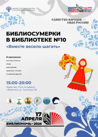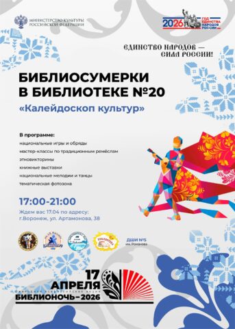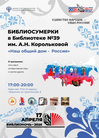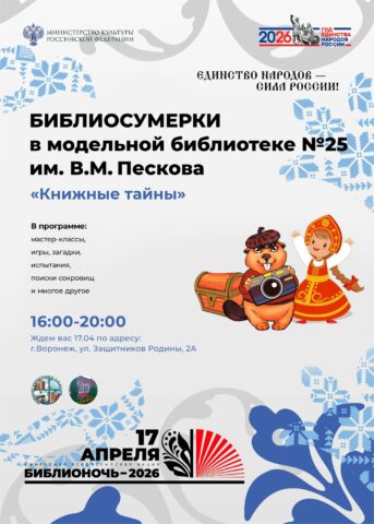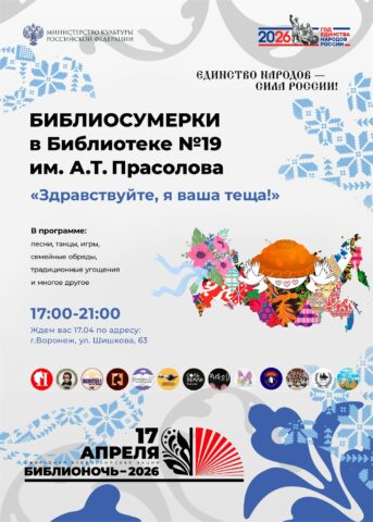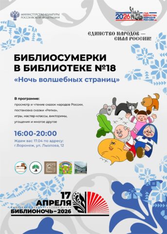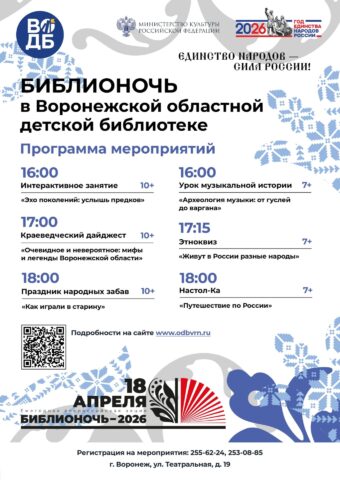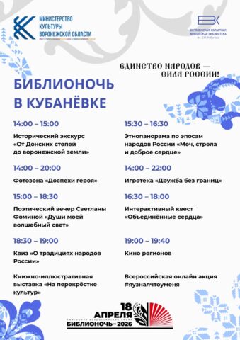«Библионочь» пройдёт по всей России и в Воронеже уже в 15-й раз. В 2026 году мероприятия в библиотеках и книжных магазинах состоятся 17 и 18 апреля. Девиз акции в этом году – «Единство народов – сила России!». Публикуем программу в материале TV Губернии.