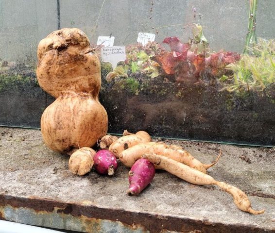 – В этом году мы решили ради эксперимента посадить три корня разных сортов в грунт. Сажали в июне, буквально вчера выкопали. Один только такой большой, остальные – грамм по 80 в среднем, – рассказала Дарья Вашанова.