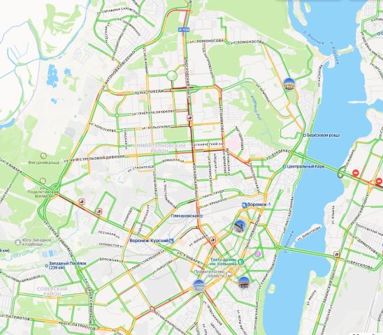 Воронеж встал в утренних пробках в первый день недели. К 09:00 понедельника, 20 октября, они оценивались как шестибалльные. Об этом свидетельствуют данные «Яндекс. Карт».