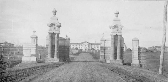 23 июня 1913 г. торжественно заложили фундамент главного учебного корпуса. Одновременно велось строительство других зданий комплекса: химического, директорского, профессорского, студенческого и служебных корпусов, а также электростанции, больницы, бани. Перед въездом на территорию городка СХИ были поставлены пропилеи – «Красные ворота».