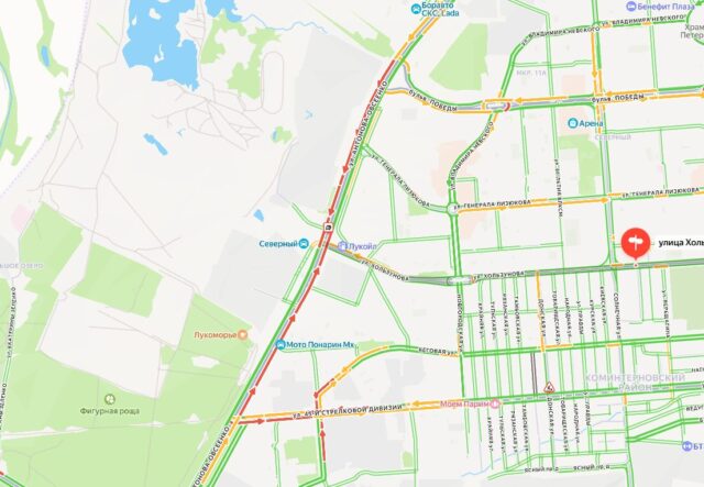 По словам горожан, на перекрёстке не работает светофор. Возможно, это и стало причиной ДТП. Водители пишут, что перекрыты две из трёх полос в этом месте. Судя по данным карты, в обе стороны образовалась 1,5-километровая пробка. Кто столкнулся конкретно и сколько участников ДТП — редакции неизвестно.