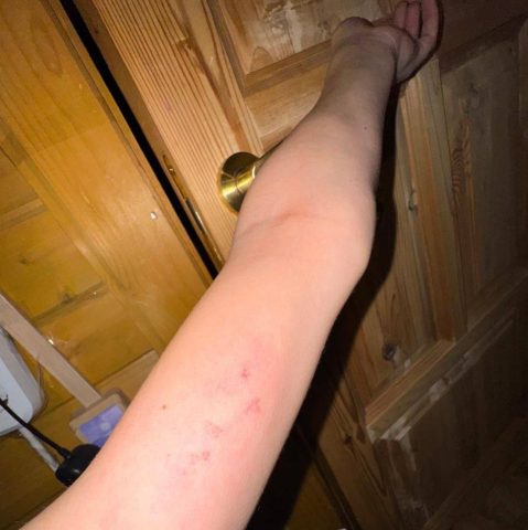 Рудковская утверждает, что Ирина Костылева систематически применяла насилие к дочери. Так она опубликовала также фото следов на шее, руках и животе Елены Костылевой. Якобы эти травмы нанесла девочке мать.